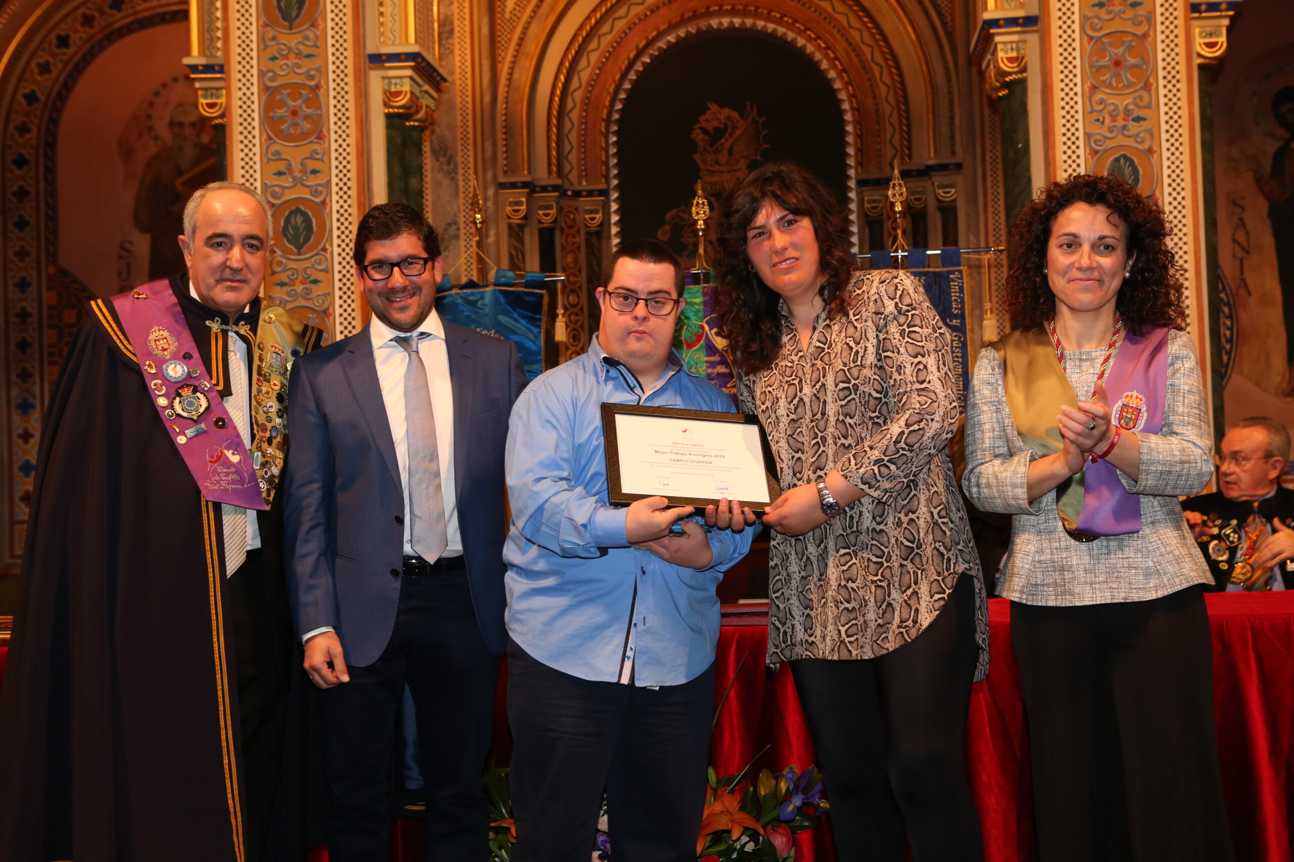 La Junta de Altos Dignatarios del Círculo de Enófilos, resolvió entregar el premio: Mejor Trabajo enológico 2019, en atención a los méritos que corresponden a la excelente labor que el Equipo del Campus Diversia realiza a diario en la recuperación de los viñedos y producción de vino llevado a cabo a través de personas con discapacidad.